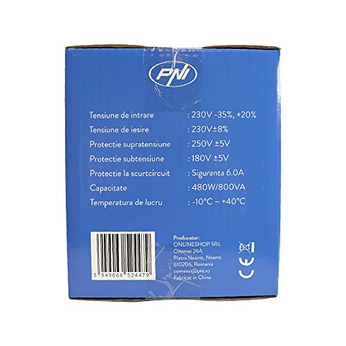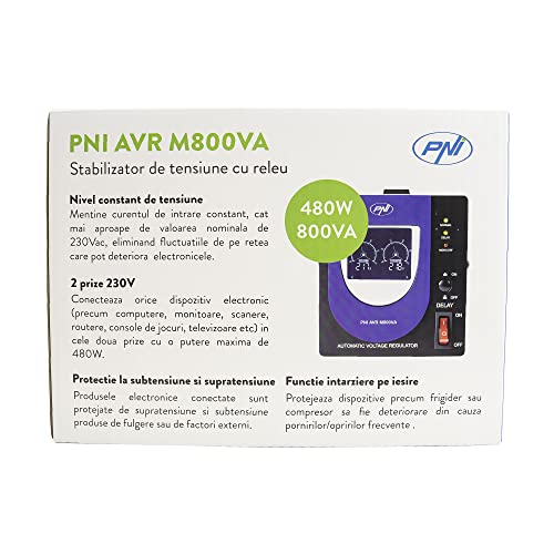 Stabilizzatore di tensione con relè PNI AVR M800VA, 2.2A, 480W, 800VA
