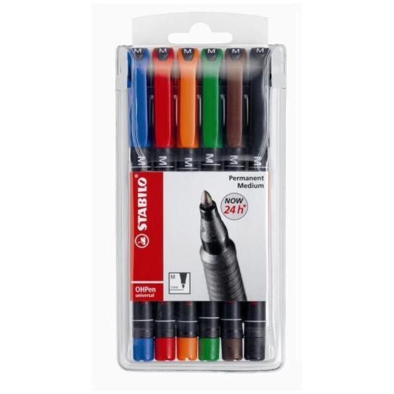 Descrizione del prodotto Pennarello permanente. Con 3 punte diverse, superfine, fine e media. Disponibile in 4 colori singoli e 8 in set. Scrive su quasi tutte le superfici Contenuto della confezione 6 pennarelli permanenti a punta media