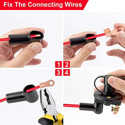 【Pacchetto Completo】Il set di interruttori della batteria include: 1x interruttore della batteria M8, 1x copertura impermeabile, 2 x tasti di taglio, 2 x morsetti di collegamento in rame e 2 x coperture isolant. I morsetti in rame possono facilitare il cablaggio. La copertura isolante impedisce di toccare direttamente i fili e protegge meglio la vostra sicurezza. Il tappo di protezione dall