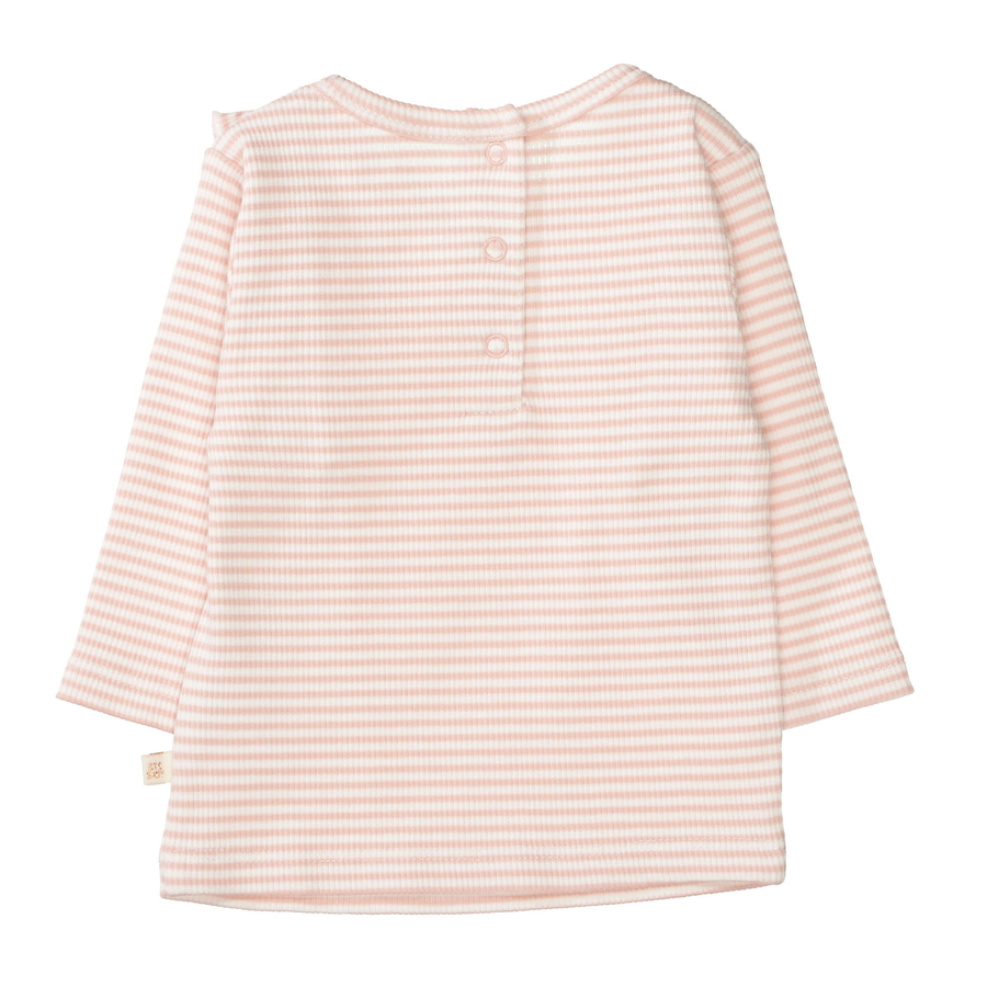 Dettagli prodotto: Camicia a maniche lunghe a righe. Design Con volant sul davanti Collo rotondo Bottoni a pressione sul retro Combinazione versatile Materiale e istruzioni per la cura: Materiale: 97 % cotone biologico, 3 % elastan Lavabile a 30° C Non candeggiare Non lavare a secco