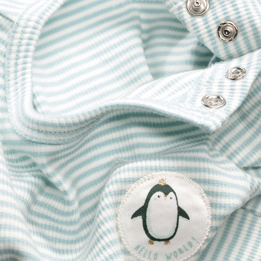Dettagli del prodotto: Camicia a maniche lunghe a righe. Design Con volant e piccola toppa di pinguino Collo rotondo Bottoni a pressione sulla spalla Materiale e istruzioni per la cura: 97 % cotone, 3 % elastan Lavabile a 30° C Non candeggiare Non lavare a secco