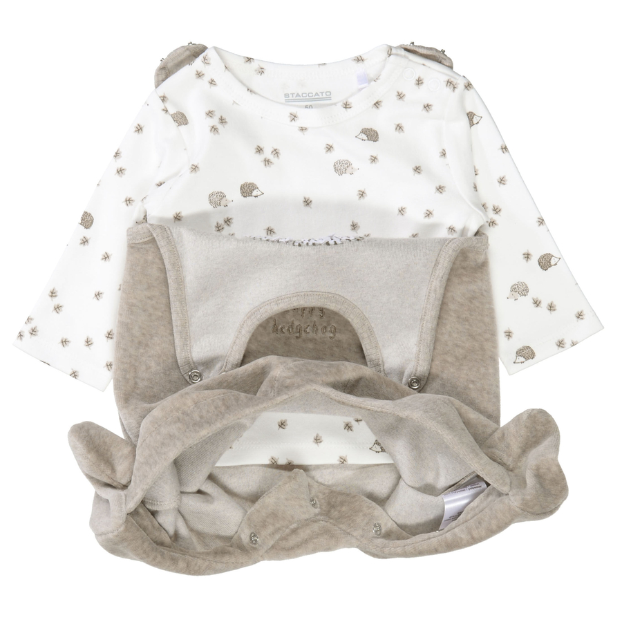 Dettagli del prodotto: Set composto da tutina e camicia Con riccio Print s Collo rotondo Bottoni a pressione su spalle e cavallo Combinazione versatile Materiale e istruzioni per la cura: Materiale: 80 % cotone, 20 % poliestere Lavabile a 30° C Non candeggiare Non lavare a secco