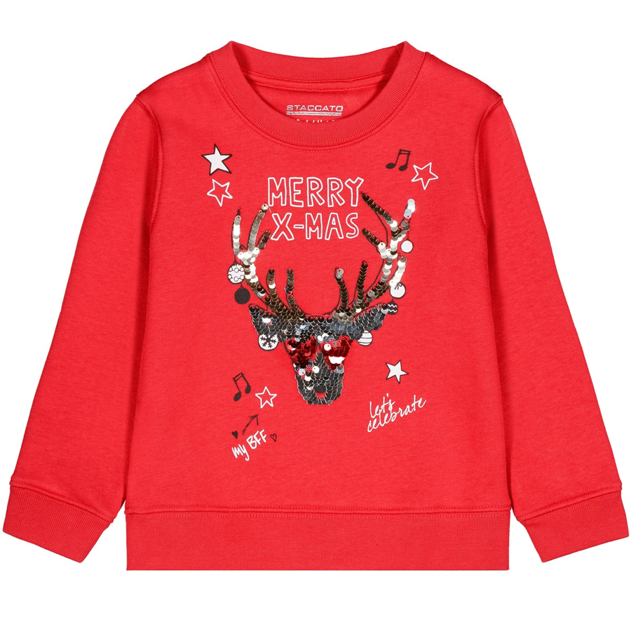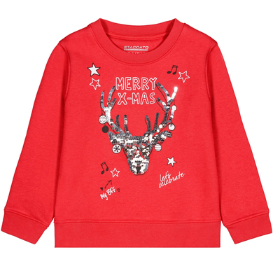 La collezione STACCATO moda bambini offre molti dettagli pratici e colpisce per le grandi vestibilità con stampe colorate e insolite. La collezione di tendenza per neonati e bambini si concentra sulla funzionalità a misura di bambino. STACCATO Materiali, qualità e vestibilità si combinano con grande attenzione ai dettagli. Colori alla moda, ottimi tessuti e un look sfrontato: questa è la moda del bambino e dei bambini! Con questa felpa dolce come lo zucchero la vostra prole è perfettamente attrezzata per il periodo natalizio. La felpa è realizzata con cura in un morbido tessuto misto cotone, che viene lavorato all'interno. La camicia è comodamente appoggiata sul corpo e ti tiene al caldo. I polsini elastici a costine sul fondo garantiscono una vestibilità sportiva. Un'attrazione speciale, tuttavia, è un meraviglioso motivo natalizio fatto di paillettes reversibili. Dettagli: Scollo rotondo, applicazione reversibile di paillettes sul davanti. Dettagli del prodotto: Materiale: 70% cotone, 20% poliestere Lavabile fino a 40 °C
