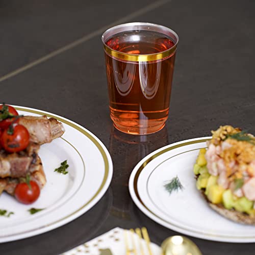 Stackables - Confezione da 50 bicchieri in plastica trasparente, 227 ml, con bordo dorato, set di eleganti bicchieri per feste, matrimoni, cocktail