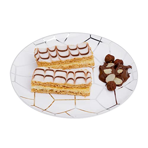 Design elegante: dai alla tua tavola un tocco senza tempo con questo set di piatti. Un'aggiunta classica a qualsiasi festa, questi piatti in plastica presentano un design elegante. Utilizzali per una varietà di occasioni, tra cui pranzi, compleanni e matrimoni. Quando stai preparando un evento elegante questi piatti di plastica dura sono il modo perfetto per servire i dessert con stile.