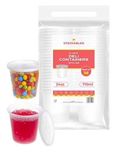 STACKABLES ~ 36 contenitori in plastica per alimenti con coperchi, confezione combinata ~ 453,6 g per microonde e lavastoviglie, contenitori per alimenti adatti al microonde e alla lavastoviglie