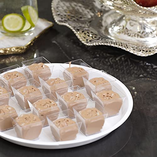 Aggiungi un aspetto elegante: aggiungi un aspetto elegante alla tua collezione di vassoi in plastica con questo vassoio da cucina in plastica rigida bianca da 30,5 cm. Questo vassoio in plastica presenta un diametro versatile di 30,5 cm, ideale per servire ed esporre dolci e antipasti decadenti. Il classico vassoio bianco elegante per feste aggiungerà un aspetto elegante indipendentemente da dove si trova.