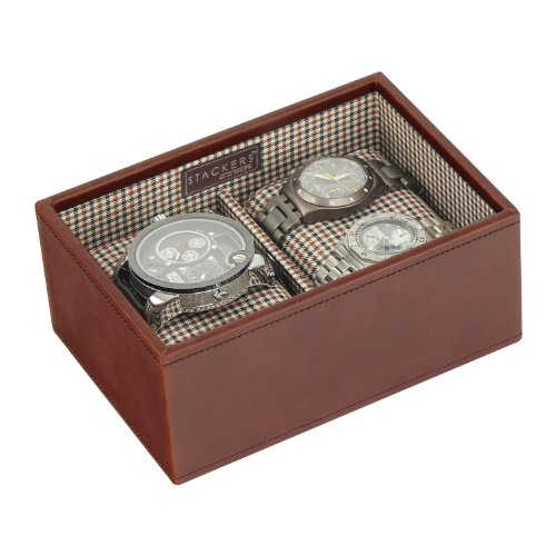 Stackers by LC Designs STACKERS - Men's Set of 2 Casual Brown Mini Lidded and Watch STACKER with Check Lining