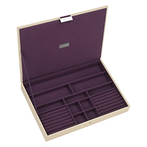 STACKERS 'Supersize' Cream Lidded Stacker Jewellery Box with Purple Lining