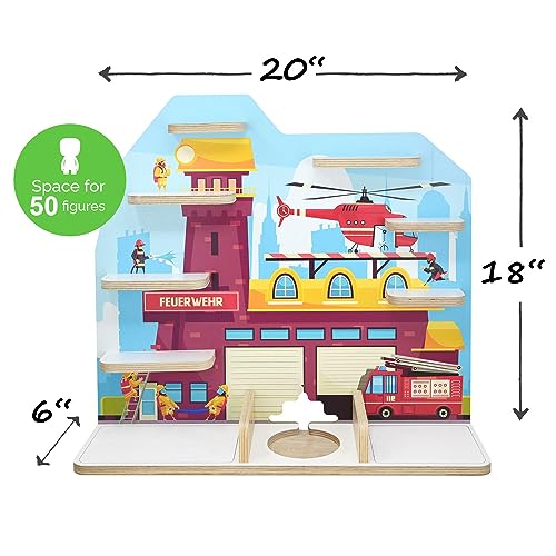 Stadtecken Scaffale in legno per scatola musicale, i vigili del fuoco, adatto per Toniebox e circa 50 tonies, perfetta conservazione tonia nella cameretta dei bambini, da appoggiare o appendere