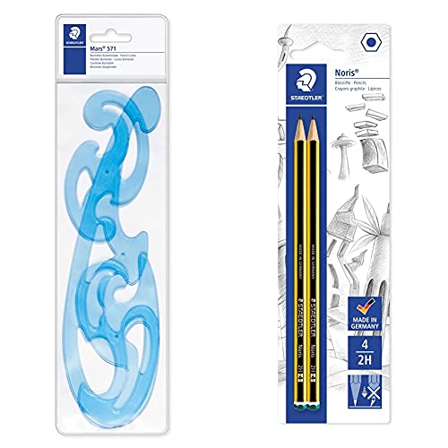 Staedtler 571 40 Wp St Curvilinee Burmester, Tre Forme In Plastica Per Disegnare Curve Di Raggio Variabile, 571 40 Wp & Bk2D Matite 2H, 2 Pezzi