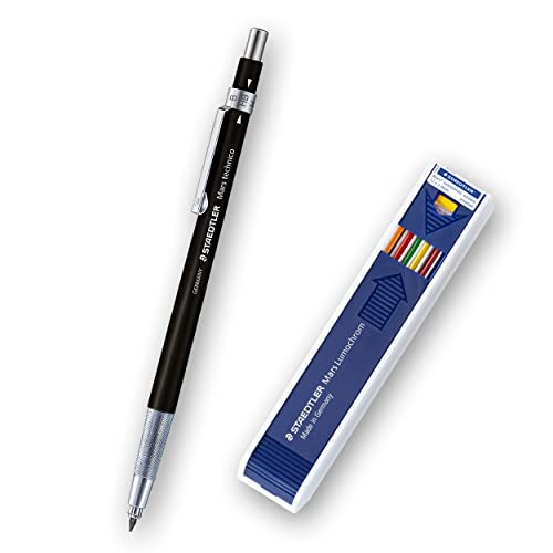 Contenuto della confezione: 1 matita Staedtler Mars Technico 780 C-9 di colore nero, con mina HB e 12 mine colorate abbinate Mars Lumochrom.