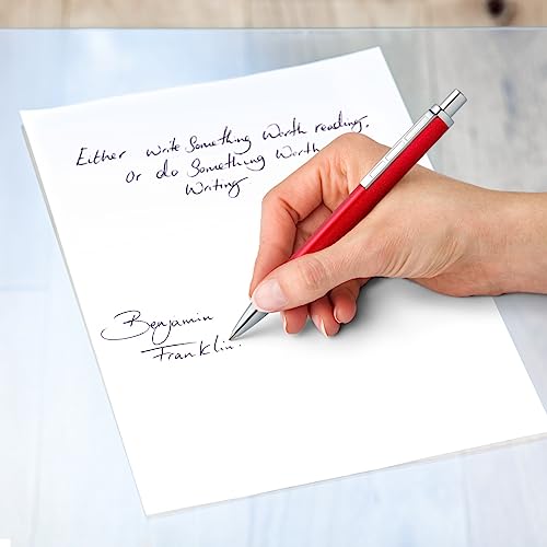 Staedtler Penna a sfera triplus 444 M, colore rosso Roaring Red, corpo in metallo di alta qualità a forma triangolare ergonomica, mina grande M, inchiostro blu, 444 M02-3