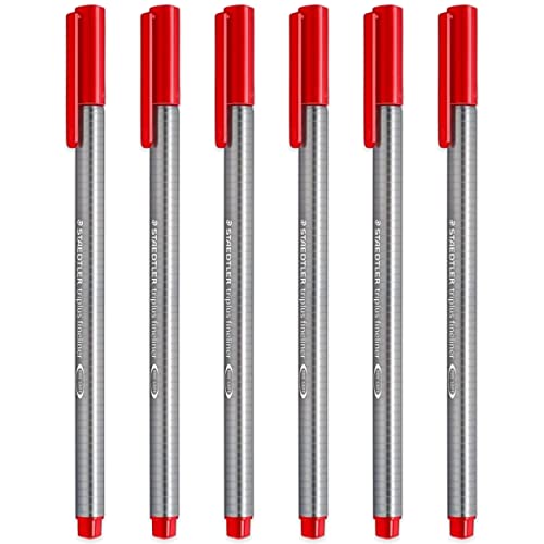 Staedtler 334 Triplus Fineliner - Penne a punta superfine, 0,3 mm, confezione da 6, colore: Rosso