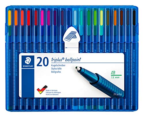 Staedtler 437 Xbsb20 - Penna a sfera Triplus Ball, forma triangolare ergonomica, alta qualità, 20 colori brillanti, larghezza linea XB
