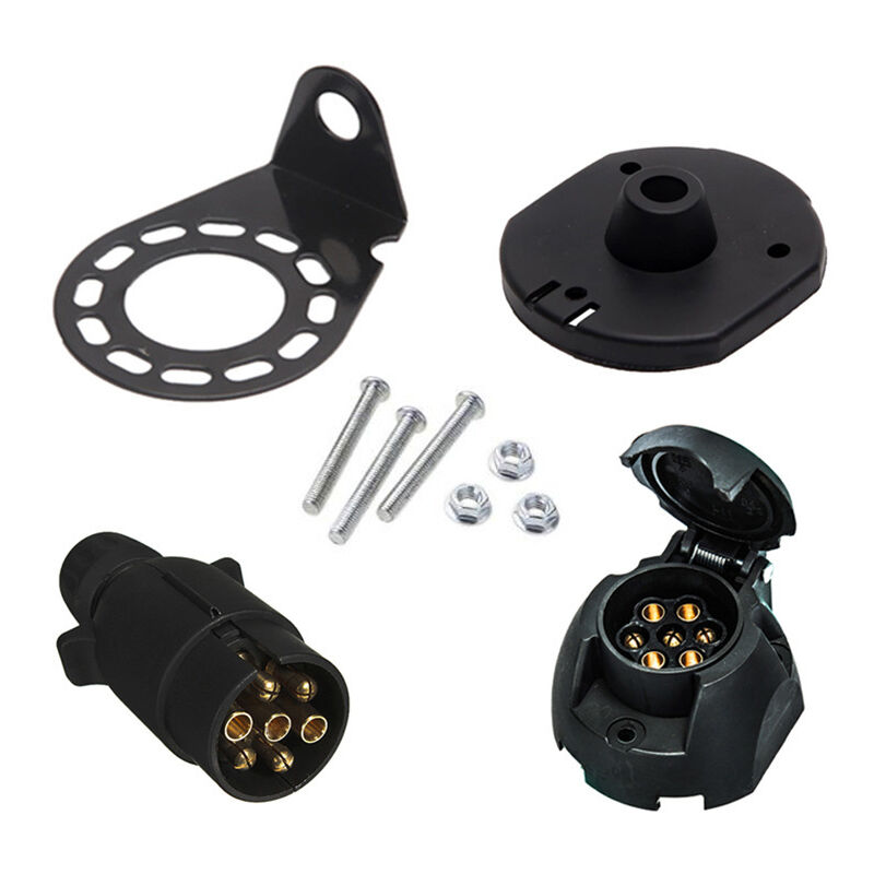 CONNESSIONE FORTE: Questa presa per rimorchio Euro 7 pin viene utilizzata per creare una solida connessione tra il rimorchio e il rimorchio. Ha perni tondi in ottone per garantire una caduta di tensione minima e una maniglia che può essere facilmente inserita e rimossa. CONNESSIONE FORTE: Questa presa per rimorchio Euro 7 pin viene utilizzata per creare una solida connessione tra il rimorchio e il rimorchio. Ha perni rotondi in ottone per garantire una caduta di tensione minima e una maniglia che può essere facilmente inserita e rimossa. Applicazione: questa è una spina per rimorchio in plastica a 7 pin (12 N) utilizzata per alimentare le luci del rimorchio o della roulotte. Trasmissione di semafori elettronici da veicolo a rimorchio. Ideale per un nuovo attacco o per sostituire una copertura danneggiata su un'auto esistente.