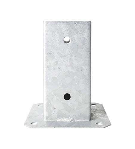 ADGO Staffa di Ancoraggio a Vite Quadrata con Base a Palo 70 x 70 mm, Manicotto di Supporto per Recinzione, per Cemento, Recinzioni, Gazebo, Garage, Capannoni, Lamiera Zincata Argento Anticorrosione