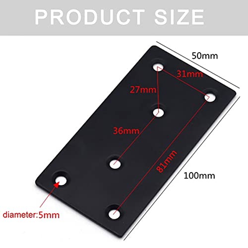 Staffa Angolare Piatta Staffa piastra forata connettore piatto - 5 PCS 100x50x2 mm Piastre Di Giunzione Staffa Piastra in Acciaio Inox per Riparazione di Connettori, Nero