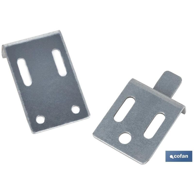 Set di ganci quadrati specifici per appendere specchi. Può essere utilizzato per appenderli sia sul lato destro che sinistro. L'unione di entrambi i pezzi che compongono il set garantisce una presa forte e sicura. Il gancio è realizzato in acciaio zinc