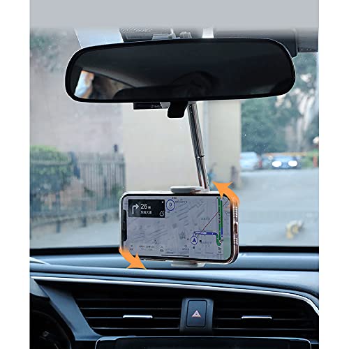 Staffa per Cellulare per Specchietto Retrovisore per Auto,MoreChioce Universale Supporto per Auto per Telefono Cellulare Rotazione a 360 ° con Braccio Telescopico per Tutti i Tipi di Smartphone,Nero