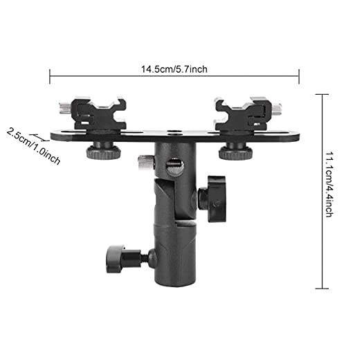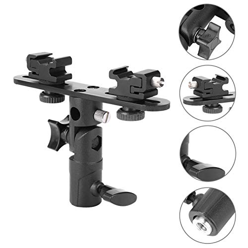 Staffa per doppio flash, supporto per lampeggiatore a slitta calda Supporto per ombrello Supporto per staffa per luce da 1/4 '' a 3/8 '' Compatibile per videocamera e videocamera
