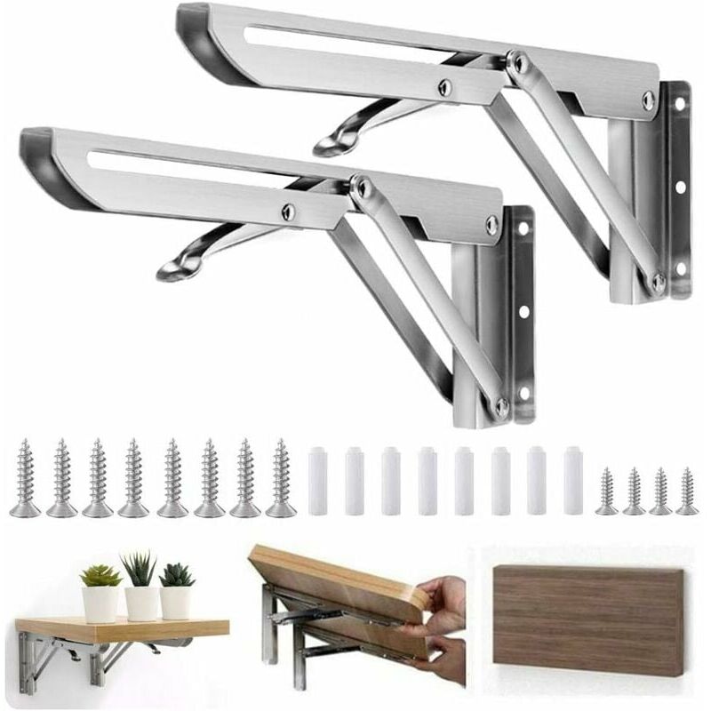 Materiale Premium - Il nostro reggimensola pieghevole è realizzato in acciaio inossidabile 304 spesso di alta qualità, con trattamento superficiale spazzolato, privo di vernice, che offre la massima durata e durata, resistente ai graffi quotidiani, alla corrosione e non facile da deformare . la struttura compatta ad angolo a L rende la massima capacità di carico dei ripiani pieghevoli in grado di sostenere fino a 300 libbre / 136 kg [Risparmio di spazio] Dotato di un blocco a sgancio rapido per garantire un funzionamento semplice e preciso. Spingi la leva e solleva tavoli o scaffali e la nostra mensola galleggiante si ripiegherà quando il lembo è in posizione aperta, permettendoti di mantenere la tua stanza organizzata e ordinata [Installazione semplice] Viene fornito con viti di montaggio essenziali, devi solo assicurarti che due staffe siano parallele e verticali al muro, facili da installare [Ampie applicazioni] La nostra cerniera da tavolo pieghevole è un valido aiuto per la
