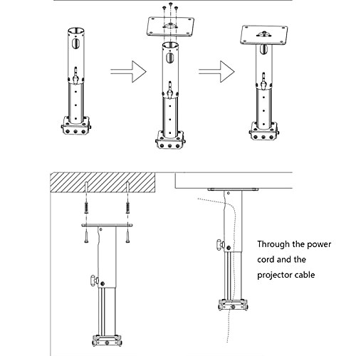 【4 bracci regolabili】 Il supporto per montaggio a soffitto del proiettore ha 4 bracci di installazione regolabili, che possono essere estesi e retratti. È possibile regolarlo in base alle dimensioni del proiettore effettivo.