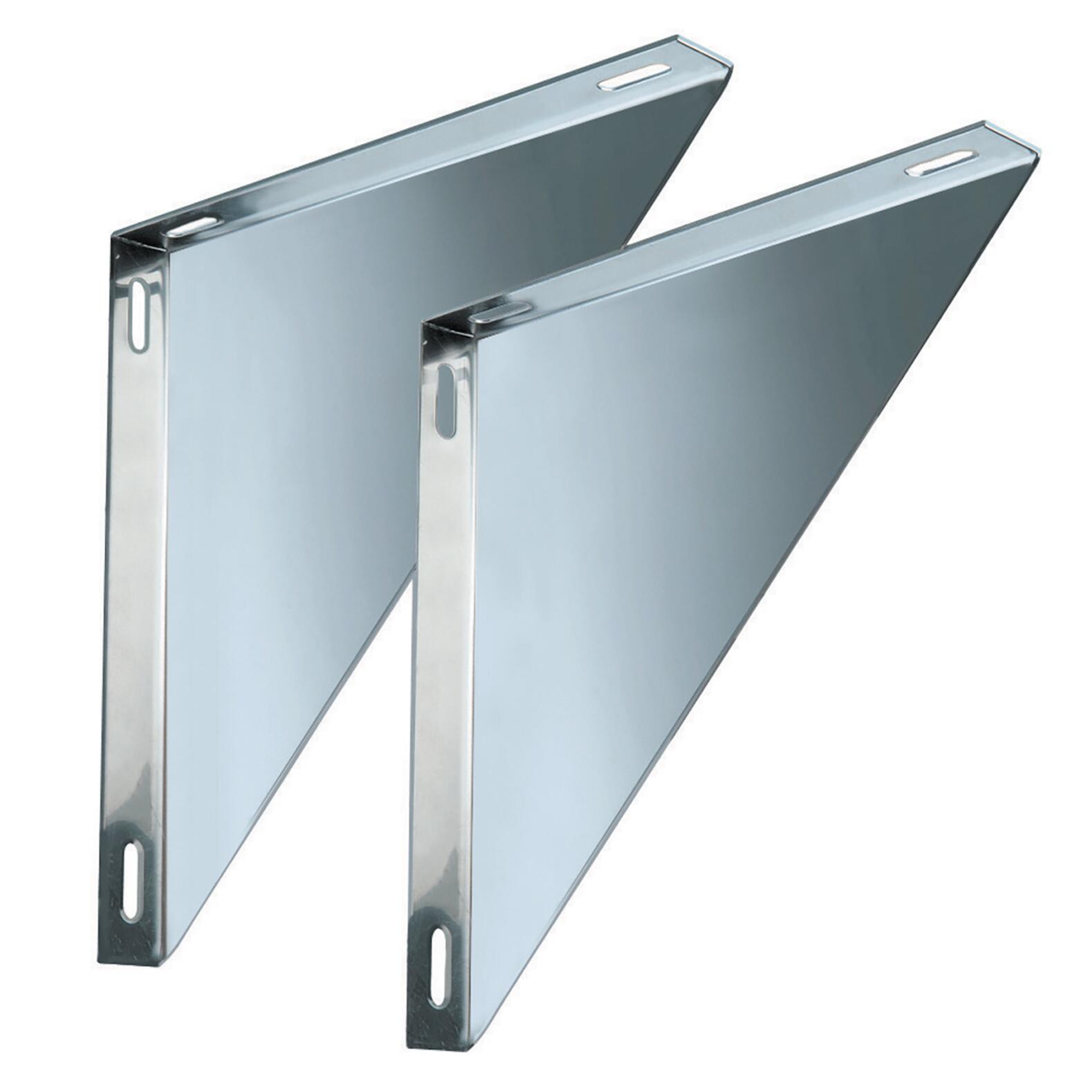 Coppie supporti per piastre mono parete DN 80. Utilizzate con piastre di partenza o con piastre intermedie garantiscono la stabilità statica della canna fumaria verticale.. Le coppie supporti fissate a muro determina una distanza minima dal muro di 5 cm