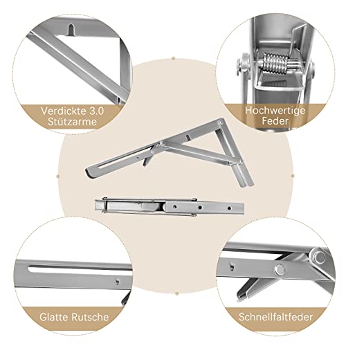 Staffa Pieghevole Inox, LYCXAMES 2 Pezzi Reggimensola Pieghevole da Parete Montaggio Supporto Mensola Reggimensole con Viti per Tavolo a Muro Camera Garage Balcone Cucina Bagno (250MM)
