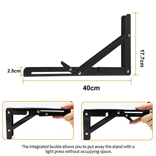 Staffa Pieghevole 400 mm, 2 Pezzi Staffe Mensole Pesanti, Supporto Da Parete In Metallo Nero, Salvaspazio Reggimensola Pieghevole da Parete Carico Massimo:80 kg