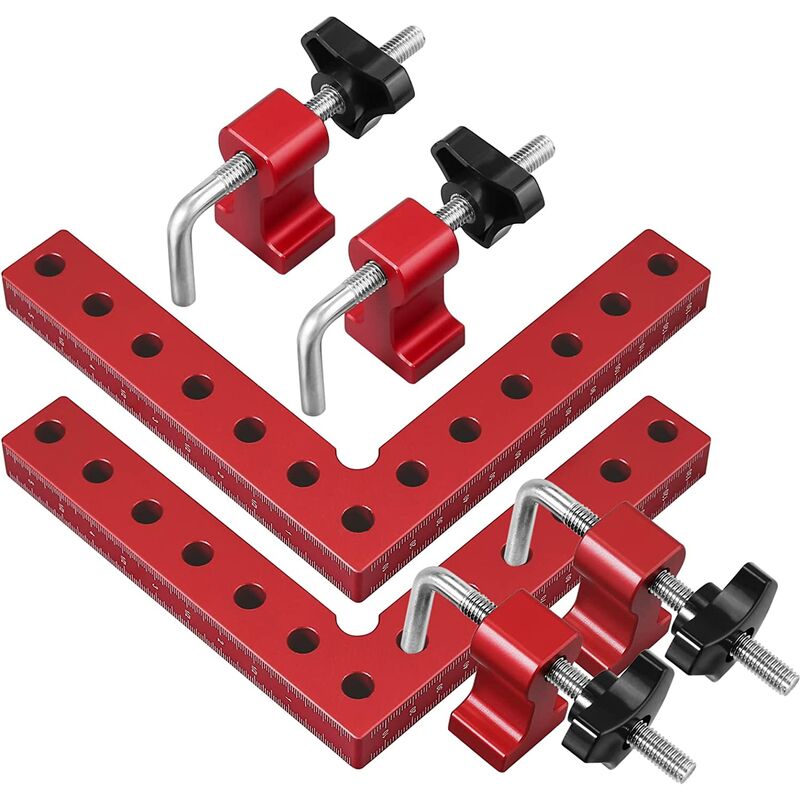 Falegname quadrato di posizionamento a 90 gradi - La confezione include 2 pezzi Il quadrato di posizionamento a 90° può fornire un solido equilibrio per un comodo utilizzo con diversi fori per adattarsi all'uso con 4 morsetti di fissaggio regolabili adatti per pannelli di legno di spessore da 7/16 a 1 9/16. 【Materiale di alta qualità】 La staffa di bloccaggio in lega di alluminio è realizzata in robusta lega di alluminio. Superficie anodizzata rossa, durevole e resistente alla corrosione, prevenzione della ruggine. 【Unità imperiale/metrica】 Il posizionamento del team del morsetto per legno dello strumento di tipo L ha una scala chiara di 140 mm x 140 mm / 5,5 × 5,5, puoi scegliere pollici o mm per una comoda visualizzazione come preferisci. 【Installazione semplice】 Metti il quadrato sull'angolo delle due materie prime che devono essere appiattite e fissate con un set di 2 blocchi. Con i bordi smussati, può essere facile da lavorare e non danneggerà i fragili spigoli vivi. 【Ampia