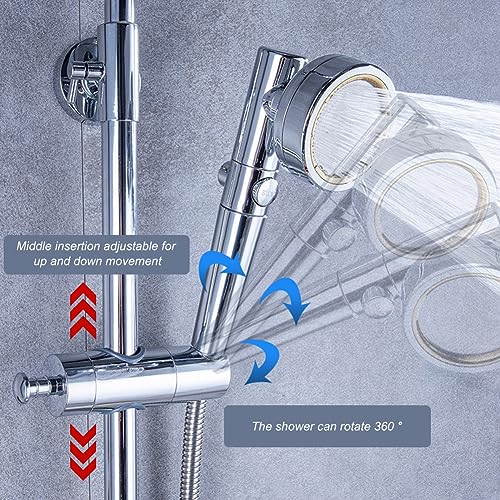 Facile installazione: Non sono necessari attrezzi, né lo smontaggio della barra doccia a muro. È possibile fissare in modo flessibile il supporto per soffione alla barra della doccia ruotando il pulsante all'estremità. Godetevi la flessibilità del supporto per soffione e la versatilità della doccia portatile.