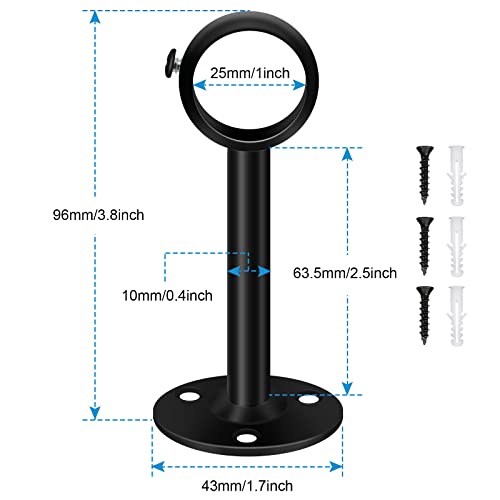 Staffa per asta per tenda da soffitto, confezione da 4, staffa nera per binario per tenda da 25 mm, in metallo resistente, asta di supporto per asta per armadio, flangia per tubi, staffa per tenda da soffitto in acciaio inossidabile