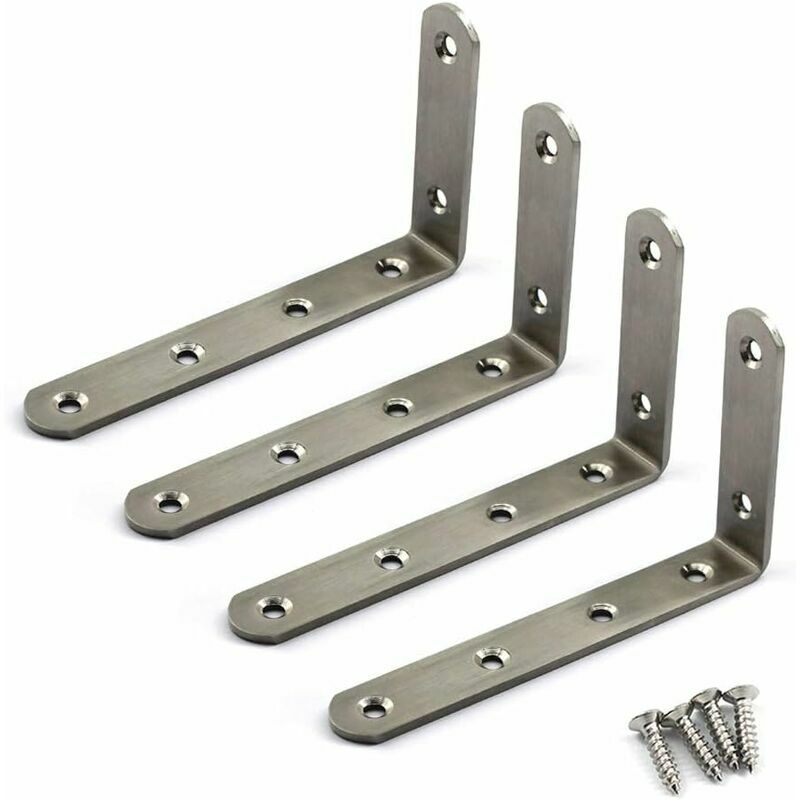 È realizzato in acciaio inossidabile e può funzionare normalmente in ambienti umidi e garantire la durata. Colore: argento Dimensioni: 125 x 75 x 3 mm. Spessore: 3 mm. Foro per vite: 5 mm Quantità: 4 viti in acciaio inossidabile Ampio utilizzo: adatto per sostenere scaffali, rinforzare tavoli e sedie e riparare mobili.
