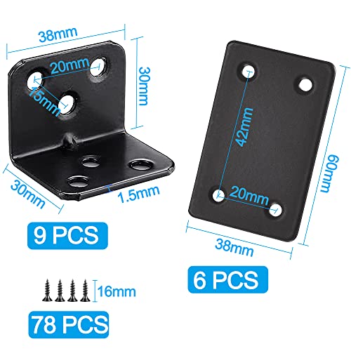 Set di 15 Staffe Angolari a forma di L (9 Pezzi) Staffa Angolare Piatta (6 Pezzi) In Acciaio Inox, Staffa ad Angolo Retto, Staffa Heavy Duty Che Unisce Riparazione Piastra Staffa Dritta (Nero)