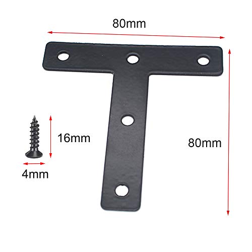 Staffe Angolari 90 Gradi Nera,Staffa a T in Acciaio Nera da 20 Pezzi,80x80mm