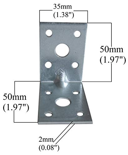 5 staffe angolari in legno resistente, 50 x 50 x 35 x 2 mm.