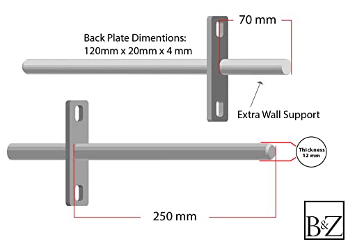 B&Z - Staffe a croce di supporto per mensole in legno di quercia a parete invisibile galleggiante per impieghi gravosi (coppia) - Per il tuo progetto fai-da-te (250 mm (backrod 70 mm)