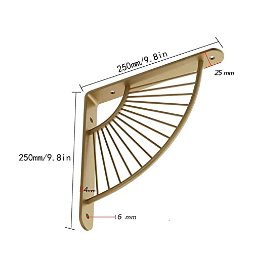 Staffe per Mensola a Muro, Settore Supporto di Metallo Triangolare Supporti Ripiani Staffe Angolari, per Libri Scaffale da Cucina Espositore,d'oro,Confezione da 2(Size:250mm/10in)
