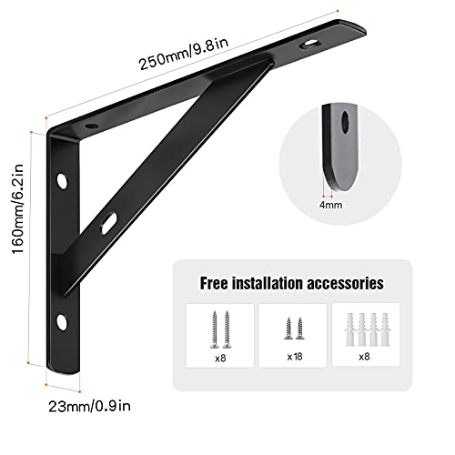 Staffe per mensole con viti, 250 mm x 160 mm (4 pezzi), utilizzate per staffe per radiatore, staffe per mensole per serra (250 x 155 mm, 4 pezzi)