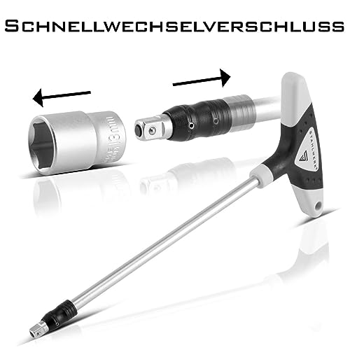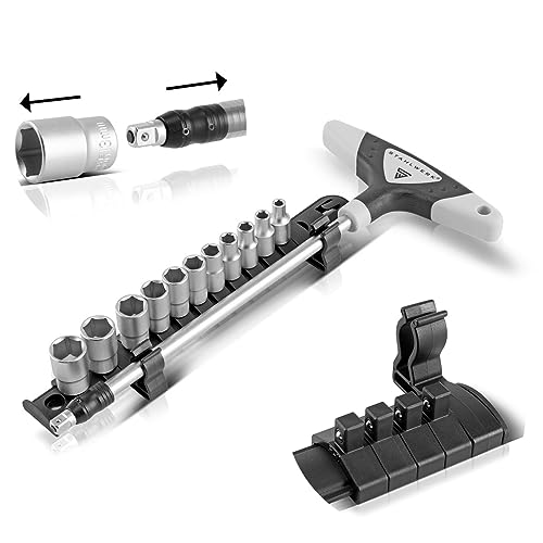 STAHLWERK Set di chiavi a bussola da 12 pezzi in acciaio al cromo-vanadio con impugnatura a T, supporto magnetico e chiusura rapida