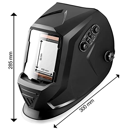 Casco da saldatore automatico con campo visivo extra ampio: 100 x 95 mm. Massima classificazione della qualità visiva: 1/1/1/1.