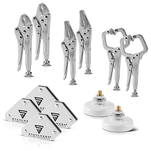 STAHLWERK Mini set di utensili multiuso composto da 2 accessori per saldatura da 12 pezzi con pinze di presa, angoli di saldatura magnetici e morsetto magnetico per piccoli lavori.
