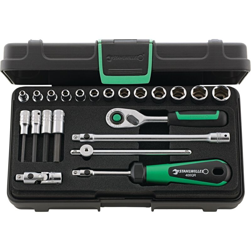 6.3 mm (1/4?) - Drive di quotazione · con QuickRELase Block SICUREZZA · Inserti della chiave inglese e controlli in acciaio in lega di cromo · Cromed Contenuto: 1 Switchback a leva (80 denti) con maniglia a 2