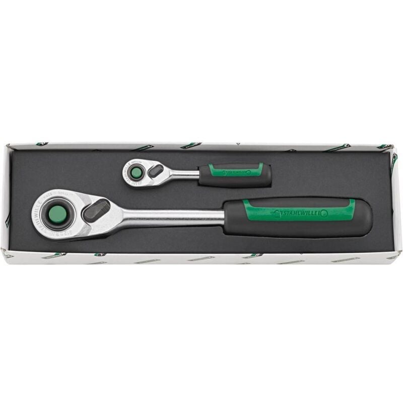 Dettagli tecnici Materiale Acciaio inossidabile cromato Numero di denti 80 Tipo prodotto Cricchetto a dentatura fine Kit di chiavi a cricchetto QR 2 pz. Cricchetto | 1/4 + 1/2 con 80 denti ciascuno Il kit composto da due pezzi è composto da un cricchetto da 1/4 e da un cricchetto da 1/2. Entrambi i cricchetti vengono forniti con pratico bloccaggio di sicurezza QuickRelease - un posizionamento sicuro e un facile rilascio delle chiavi a bussola e dei componenti di collegamento sono forniti in qualsiasi momento. 80 denti consentono un angolo di lavoro di soli 4,5°, per un lavoro efficiente anche in spazi ristretti. Tuttavia, a differenza dei tradizionali bracci a dentatura fine, otto denti si innestano l'uno nell'altro. Per la massima capacità di carico con un'elevata scorrevolezza e una lunga durata. Testo tradotto automaticamente Caratteristiche Kit di chiavi a cricchetto con due cricchetti Stahlwille commutabili (1/4 + 1/2), 80 denti, scatto a pressione QR, DIN 3122/ISO 3315 Sistema