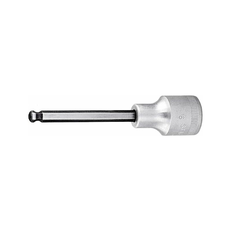 Costituite da due componenti. Corpo temprato in modo ottimale per l'assorbimento e la trasmissione della forza motrice. Quadro interno con tolleranze ridotte per una presa sicura e stabile sull'utensile di manovra. Quadro interno secondo DIN 3120. Uso: Per avvitare con angolazione fino a 25°. Materiale: Acciaio al cromo, rivestimento NiCr resistente al distacco. Esagono in materiale tenace con durezza elevata, esecuzione lucida. Dati tecnici Con testa sferoidale sì Profilo di manovra Giravite esagonale Quadro di manovra femmina Zoll 1/2 Tipo di prodotto Bussola Lunghezza, mm 100 Esagono, mm 6 ⌀ Lato azionamento, mm 22,7