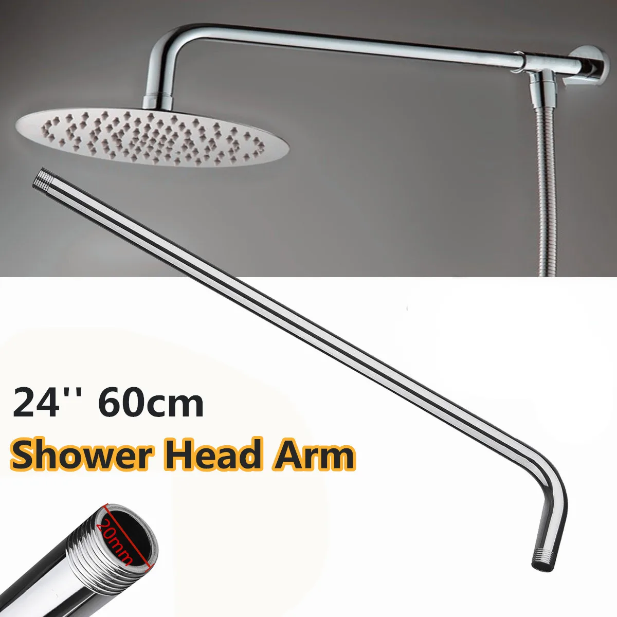 Hot Stainless Steel 24inch Wall Mounted Shower Extension Arm For Rainfall Shower Head Shower Arms Bathroom Tools Accessories