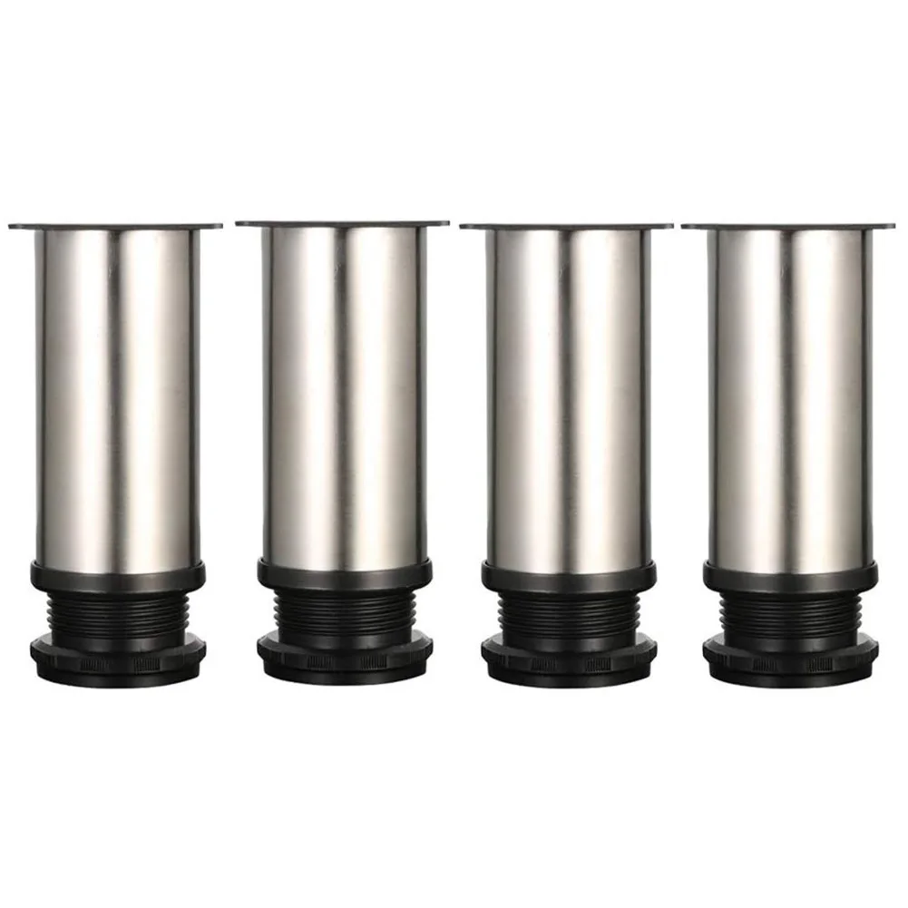 4pcs Stainless Steel Adjustable Furniture Legs Bed Foot Worktop Bar House Sofa Cabinet Table Feet TV Desk Heavy Duty Solid Round
