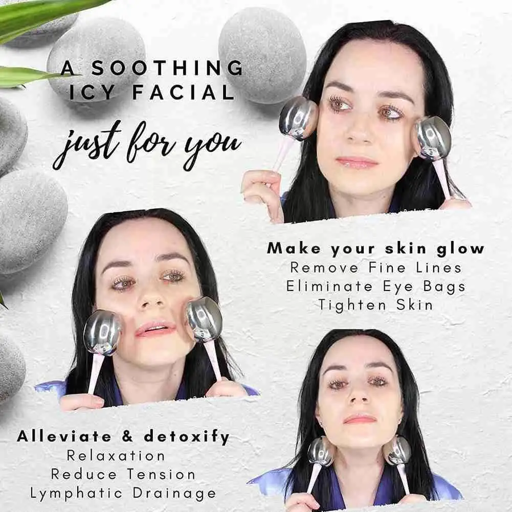 Stainless Steel Beauty Ice Globes Face Eye Massager 1 Lines Pair Lift Roller Fine Ball Skin Reduce Care Neck Body Face R8S1