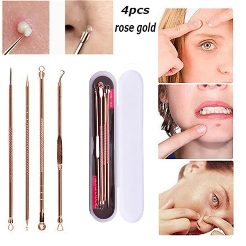 4PCS Set Stainless Steel Beauty Tools For Removing Blackhead Fat Particles Acne Needle Treatment Pore Needle Hook Skin Care